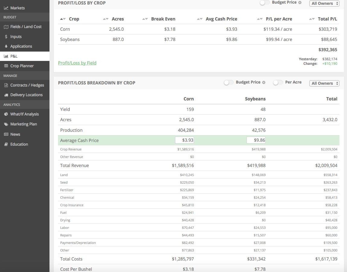 We've built a set of software tools focused on making it easier for you to track your farms costs, profits, grain marketing positions, and inventory.